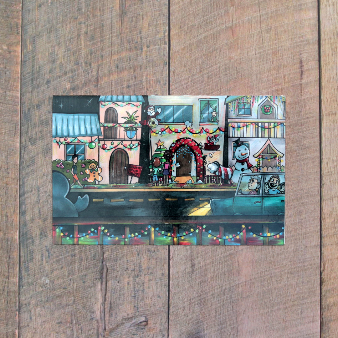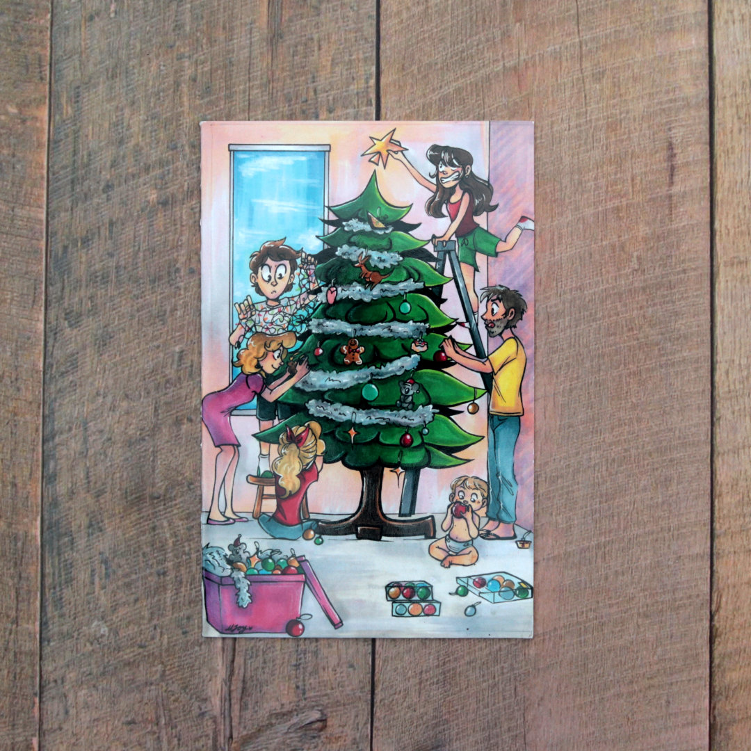 This Aussie Christmas Card set features 6 original card designs drawn by Mjoy, and includes corresponding envelopes. Each card is 11.7 x 18.2 cm, printed on glossy card.